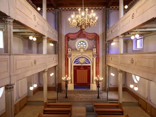 Stará synagoga stojí ve Smetanových sadech od roku 1859. V letech 2010 – 2014 prošla důkladnou rekonstrukcí. Největším lákadlem je pozlacený svatostánek Aron HaKodeš. Před zraky návštěvníků je oproti Velké synagoze ukryta ve dvoře domu č.p. 80/5.