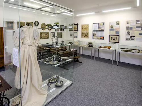 Průchodem pod renesanční Pražskou branou projdete k domu č.p. 109, kde se ponoříte do dějin Velvar a okolí. Unikátní sbírka muzea zachycující historii každodenního života mohla vzniknout díky darům místních obyvatel. Přijďte i vy nahlédnout do malých příběhů odehrávajících se na pozadí dějin.
