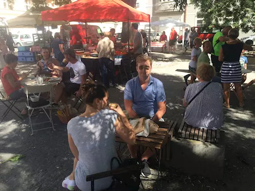 Farmářský trh na Řezáčově náměstí v Praze 7, tzv. Farmářský trh Heřmaňák. Výjimečný je tím, že na něm nenajdete žádné mikrotenové sáčky ani igelitové tašky. Na zeleninu a ovoce vám zapůjčí proutěný koš a po zvážení si uložíte do svých obalů, nebo papírových sáčků.