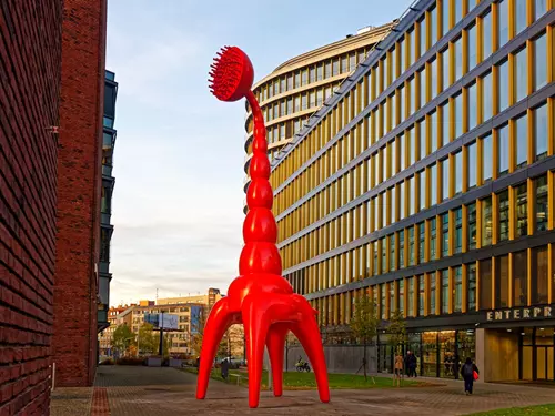 Přejít na detail článku "Socha červené žirafy Jaroslava Róny na Pankráci"